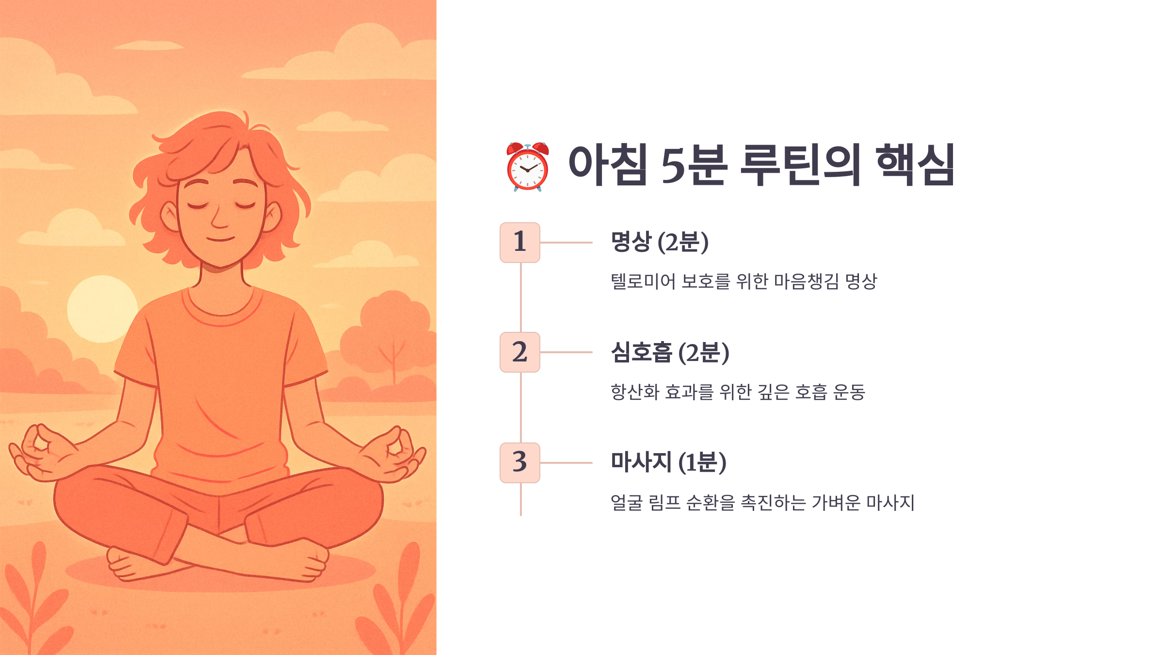 다섯 가지 단계를 1분씩만 하면 돼요. 너무 간단하죠? 매일 반복하면 몸이 자동으로 리듬을 기억하게 돼요. 이게 바로 노화를 늦추는 가장 쉬운 첫 걸음이에요.