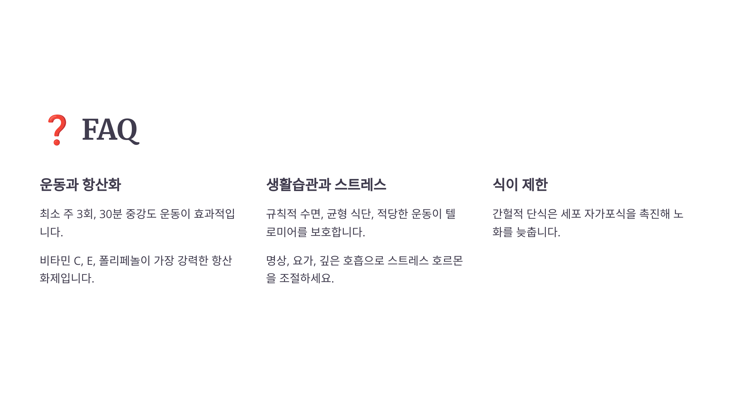 우리 몸속 세포는 매일 산화 스트레스에 노출되고, 이때 생기는 활성산소가 세포를 손상시키며 노화를 유도해요. 특히 수면 부족, 스트레스, 나쁜 식습관은 노화를 앞당기는 주범이에요.